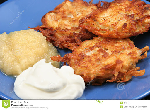 Fry 1/3 cupfuls of latke mixture in very hot peanut oil until browned and crispy on both sides, pressing with spatula to form round cakes.