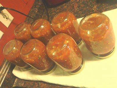 - put in jars put lids on turn jars over for 30 minutes then flip. the jars with seal as they cool down makes 7 to 9 pints