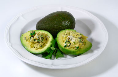 •Place the cooked egg mixture in the avocado halves. Add salt and pepper. Serve.