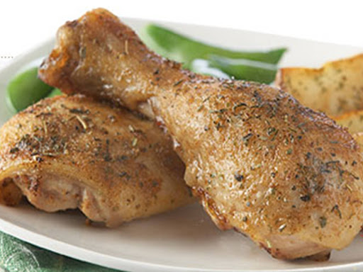 Prepare a broiler pan by covering the broiler with aluminum foil. Remove chicken from the refrigerator and place on the broiler pan, with the skin side down. Set the broiler pan on a rack positioned 5+ inches from the broil element. Broil on Hi for about 10 minutes or until golden brown. Reduce heat to a Lo broil for 5 minutes. Turn the chicken over and reset the oven to Hi broil. Cook for 5 minutes and then reduce heat to a Lo broil for 5 minutes. Total cook time is 25 minutes. Remove the chicken from the oven and serve.