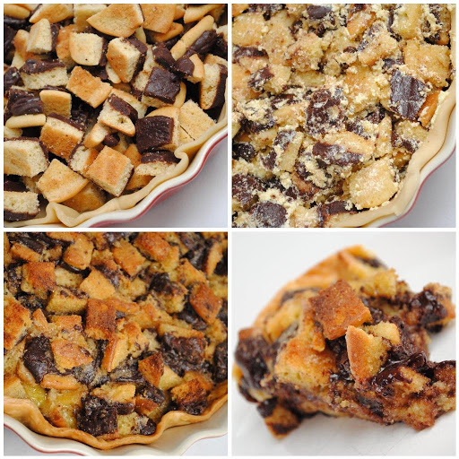 Chop up Berger cookies, and fill the pie crust with the pieces (you may have a few extra to nibble on).