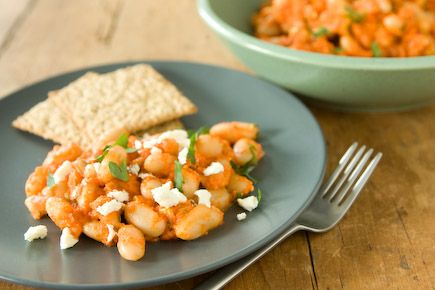 Put oil, lemon juice, garlic and peppers into a blender and process until smooth; transfer to a large bowl. Add feta, onions, parsley, oregano, beans, salt and pepper and toss gently to coat. Serve immediately or cover with plastic wrap and refrigerate overnight to allow time for the flavors to meld. Bring back to room temperature before serving and garnish with a bit more feta cheese, if you like.