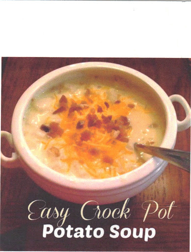 Put the potatoes in the Crockpot. Add in the chicken broth, cream of chicken soup and half of the bacon bits. Add a pinch of salt and pepper.
