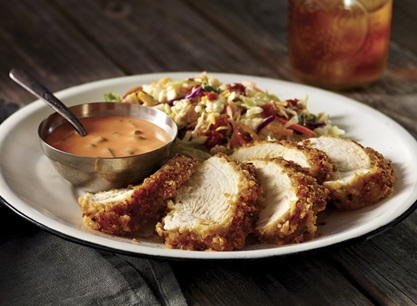 1. Preheat oven to 400°F. Line baking sheet with foil. Place egg in shallow bowl; place coating mix in second bowl. Dip chicken into egg (allowing excess to drip off), then dip into breading mixture, pressing with fingertips to evenly coat. Arrange chicken on baking sheet (wash hands). Bake chicken 12 minutes.