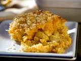 Melt the butter in a saute pan and toss the bread crumbs to coat. Top the macaroni with the bread crumbs. Bake for 30 minutes. Remove from oven and rest for five minutes before serving.
