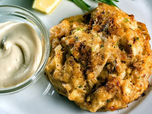 Each crab cake: 231 calories; 14 grams protein; 8 grams carbohydrates; 0 fiber; 16 grams fat; 3 grams saturated fat; 100 mg. cholesterol; 1 gram sugar; 360 mg. sodium.