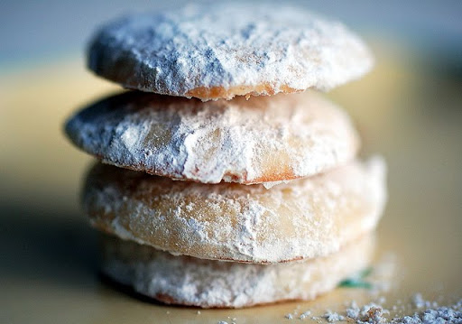 Roll teaspoons of dough into balls, place on cookie sheets, and bake 10 minutes or until light golden on the bottoms. Transfer cookies to wire racks to cool completely. When cool, dip cookies into confectioners' sugar.