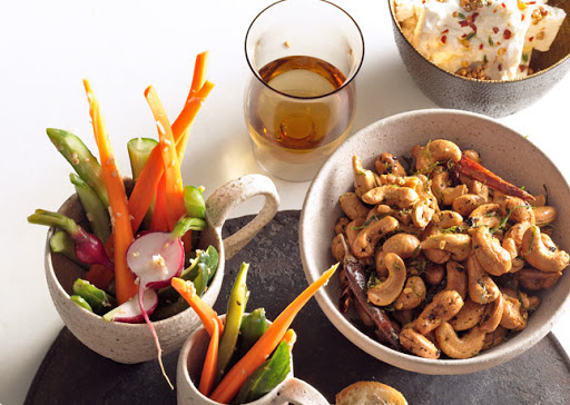 Roast, stirring occasionally, until cashews are evenly toasted and fragrant, about 20 minutes. Let nut mixture cool completely on sheet on a wire rack. Transfer nuts to a large bowl and toss with 2 tablespoons finely grated lime zest, making sure to evenly distribute spices and zest. DO AHEAD Can be made 2 days ahead. Store airtight at room temperature.