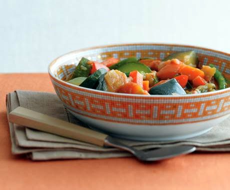 Meanwhile, cook green beans in a 3- to 4-quart saucepan of well-salted boiling water until crisp-tender, about 5 minutes. Transfer with a slotted spoon to a large bowl. Add zucchini to boiling water and cook until crisp-tender, about 5 minutes. Transfer with slotted spoon to bowl with green beans. Add potatoes to boiling water and cook until just tender, about 10 minutes. Drain and add to beans and zucchini.
