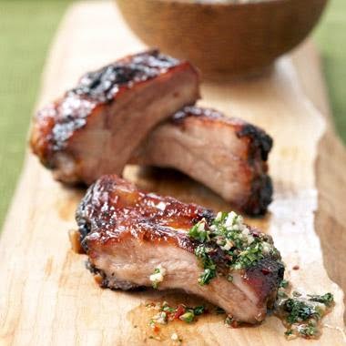 2. Place pork ribs in a large bowl or a pair of heavy resealable plastic bags. Thoroughly coat the ribs with the marinade, massaging the paste into the flesh for a minute or so. Cover and marinate at room temperature for 2 hours or up to 5 hours in the refrigerator, tossing the ribs once or twice during this time.