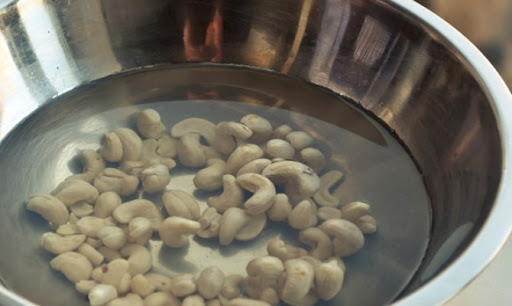 Soak cashews in a bowl of water at least four hours, but preferably overnight. Drain cashews and rinse until water runs clear. Add cashews, along with two cups water, into a blender and pulse until pulverized.