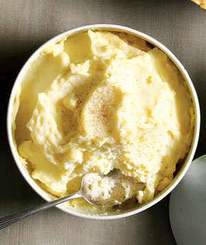 3. Strain the milk mixture into the pot with the potatoes. Add 3/4 tsp salt and a 1/4 tsp pepper and mash. Sprinkle with the nutmeg before serving.