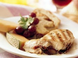 Heat coals or gas grill for direct heat. Carefully cut a horizontal slit in each chicken breast half, making a pocket when top of chicken is lifted back.