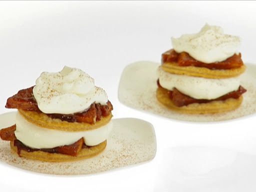 To assemble the pies: Place the pastry disks on a work surface. Divide the cooked apple slices among 4 of the disks. Dollop about 2 tablespoons of the cream on top of the apples and cover with the remaining disks.