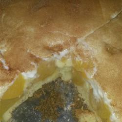Spread mixture into baking dish. Arrange the peach slices on top of the pudding mixture.