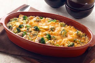 ADD rice, chicken, broccoli and 1 cup cheese; mix well. Cover.