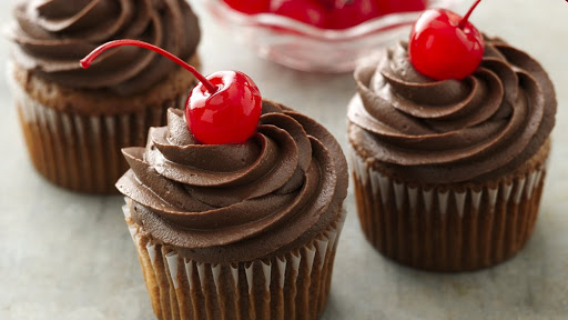 Pipe or spread frosting over top of each cupcake. Top each with maraschino cherry.