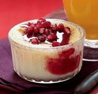 Serve the puddings in the ramekins, each topped with about a tablespoon of pomegranate syrup and seeds.