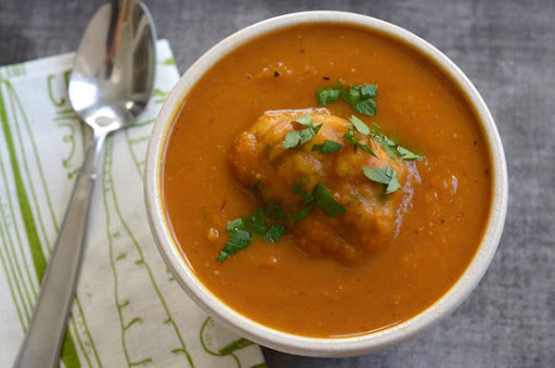 The dish I'm about to share is really two recipes in one – heavenly together but also good building blocks for many other meals this fall and winter. First up is a creamy, yet dairy-free, soup with roasted fall vegetables like butternut squash, sweet potatoes, carrots, and parsnips. Then come the dumplings.