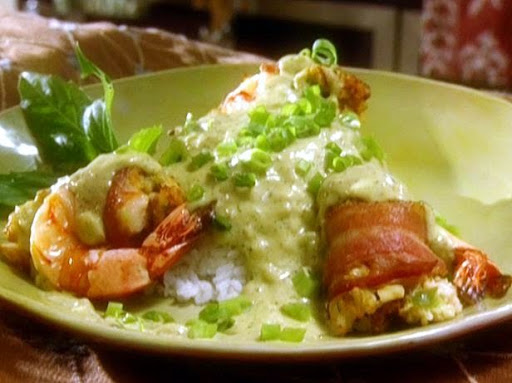 Split shrimp down the bottom center to tail, being careful not to cut through. Stuff each shrimp with crabmeat mixture. Wrap shrimp in bacon and secure with a toothpick. Place on a baking pan and cook at 350 degrees until bacon is crisp and shrimp are pink, about 15 to 20 minutes.