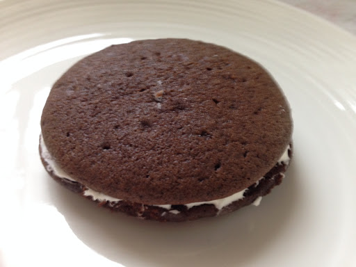 1.Make the cakes- Preheat oven to 350 and line 2 large baking sheets with parchment paper. In a medium owl, whisk the flour with cocoa powder,baking soda, salt and cream of tartar. in a large bowl, using a handheld electric mixer or standing mixer, beat butter with the sugar until light and fluffy, about 2 minutes. Beat in eggs and vanilla. At low speed, beat in dry ingredients and milk in 3 alternating additions; scrape down the side and bottom of the bowl after each