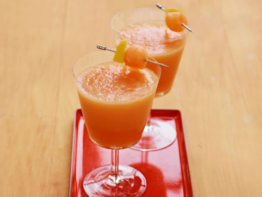 Puree the cantaloupe with the cider, the juice of 1/2 lemon (or to taste) and a pinch of salt in a blender on low speed. You want to keep the mixture to be smooth, keeping the blender on low will help you avoid whipping unnecesary air into the melon and lightening the flavor along with the color. Add a little ice water if the blender has trouble blending the melon, and if you feel the melon lacks sweetness, add honey to taste. Refrigerate until ready to make the drinks.