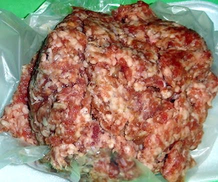 Combine diced pork with all other ingredients and chill for 1 hour. Using the fine blade of a grinder, grind the pork. Form into 1-inch rounds.