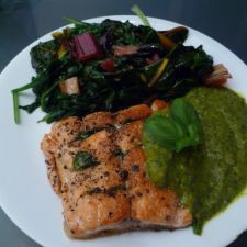 In a small bowl, mix together all ginger aidi ingredients. Pour over salmon and spread smooth.