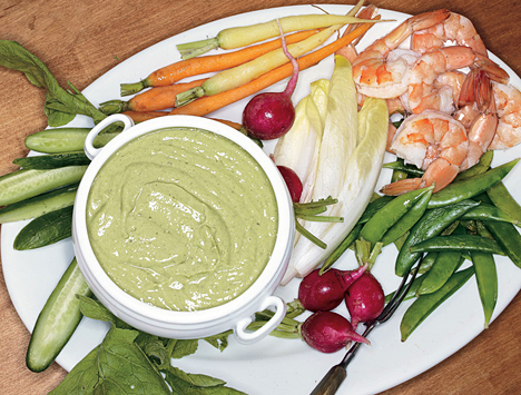 Can be made one day ahead. Cover and chill. To serve, place bowl of dip on large platter. Surround with shrimp and vegetables.