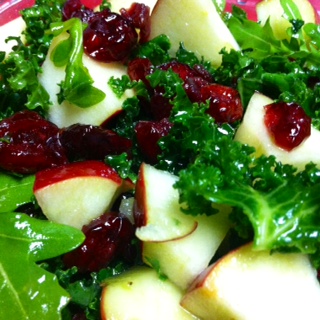 Place chopped kale, cubed apple and cranberries in a medium or large mixing bowl.