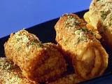 Dredge rolled wrapper in egg wash again, and then thoroughly coat in bread crumb mixture. (Wrappers can be frozen for future use at this point.)