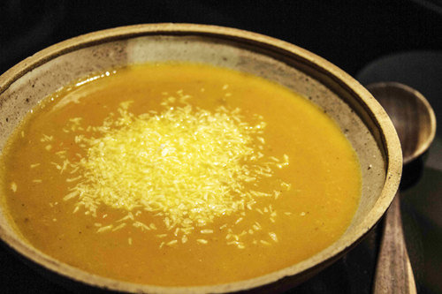 Remove the pot from its burner and take approximately 1 cup of the diced carrots from the mixture and set aside.