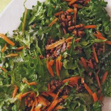 - 1 cup raw, fresh small Tuscan Kale, per individual salad, cut chiffonade into half inch strips then cut in half for bite size pieces