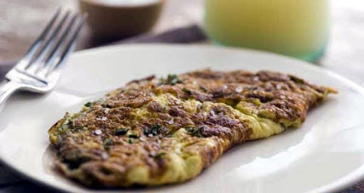 1. Break 2 eggs into a bowl and beat with a fork or a whisk until frothy. Add salt and freshly ground pepper to taste (about 1/8 teaspoon salt), and 2 teaspoons milk. Whisk half the herbs into the eggs and mix well.