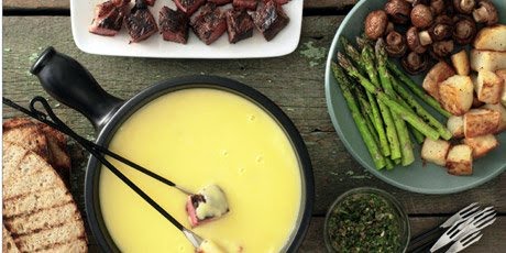 Season with truffle oil and salt and cook for another 5 minutes. Do not allow the mixture to boil or it will separate. Meanwhile, rub the inside of a fondue pot with the clove of garlic. Transfer cheese mixture to the fondue bowl, and serve with potatoes, steak, vegetables, bread and salsa verde.