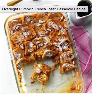 In a large bowl, whisk eggs, evaporated milk, pumpkin, brown sugar, fat-free milk, spices and salt. Pour over top. Refrigerate, covered, overnight.