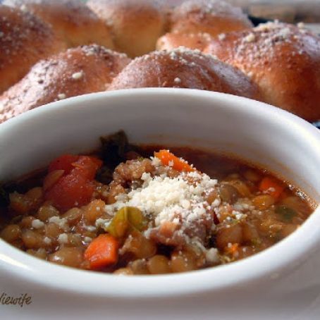 This soup turned out to be very hearty and flavorful, especially with my Parmesan Skillet rolls!