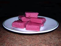 In a large 3 quart saucepan, combine raspberry puree, sugar, milk, corn syrup and butter. Cook over medium heat, stirring until mixture comes to a boil. Cook to 238F on candy thermometer (soft ball stage). Do not stir. Remove from heat. Do not stir.