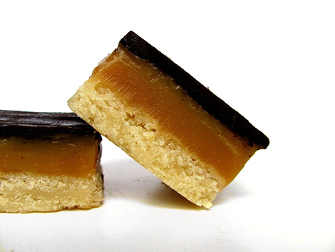 2. Pour caramel on top of shortbread. Place pan in the freezer for an hour.