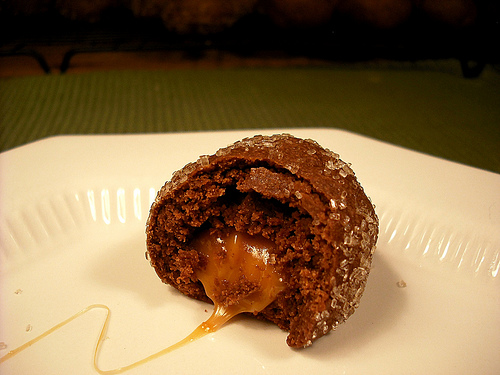 Note: These are best served fresh from the oven or slightly reheated (a quick zap in the microwave will do the trick). This warms the caramel up, making it gooey and delicious. Served at room temperature they are still yummy but the caramels are chewier.