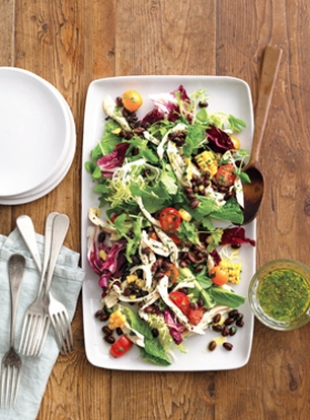 4. To serve, divide lettuce among four shallow salad bowls. top each with 11⁄2 cups chicken salad.