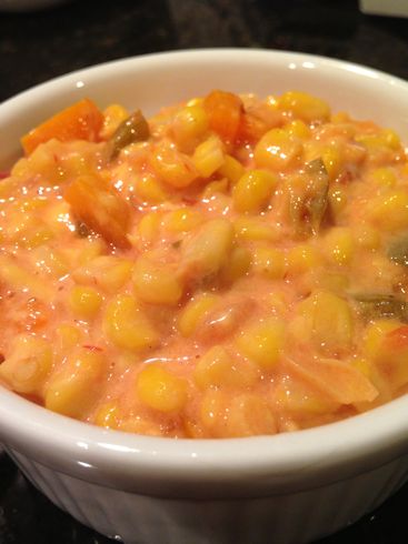 Place corn and 2 T. water in a 2 quart dish. Cover with lid. Microwave on high 6 minutes. Stir in bell pepper, microwave on high 30 seconds. Drain well. Add cheese, salsa and salt; stir until cheese melts. serve immediately.