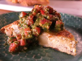 Frittata with Pan-Roasted Potatoes, Smoked Mozzarella and Tomato-Basil Pesto