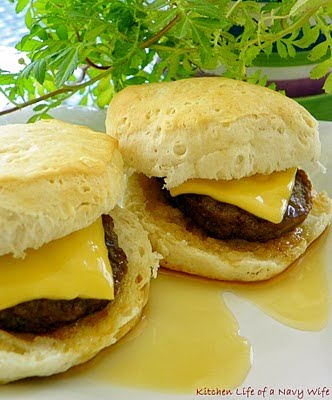 Cook biscuits according to package. Meanwhile cook sausage patties as directed on package. Cut warm biscuits horizontally in half. Place sausage patty and piece of cheese in each biscuit (and egg of desired). Serve with maple syrup.