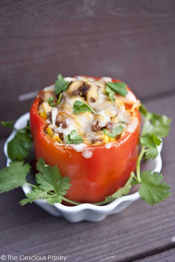 For a healthy and filling meal, these stuffed bell peppers make a great main dish. Filled with ground turkey, corn, onion, and baked in salsa.