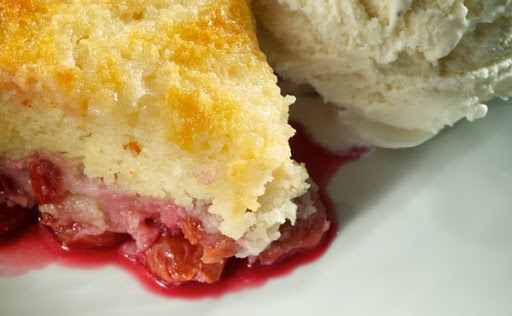 Combine sugar, flour, baking powder, salt and milk. Pour over butter, do not stir.