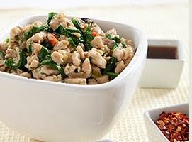 Thai stir-fries often feature small pieces of chopped meat versus the larger strips or chunks in many Chinese stir-fries.