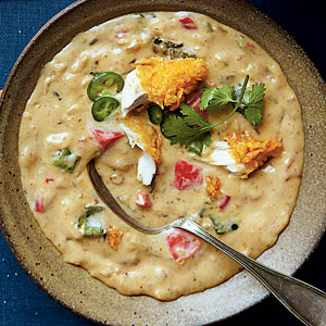 3. Add cheeses, and cook, stirring constantly, until cheeses melt and mixture is thoroughly heated. Serve with desired toppings.