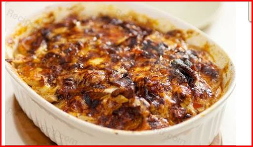 In 1 1/2-qt. casserole, arrange alternate layers of potatoes, onion, sauce, and cheese.