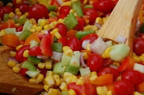 In a large bowl, combine the first 12 ingredients. In a microwave-safe dish, combine oil and garlic. Microwave, uncovered, on high for one minute. Cool. Whisk in lime juice. Pour over the corn mixture and toss to coat. Cover and refrigerate until serving.